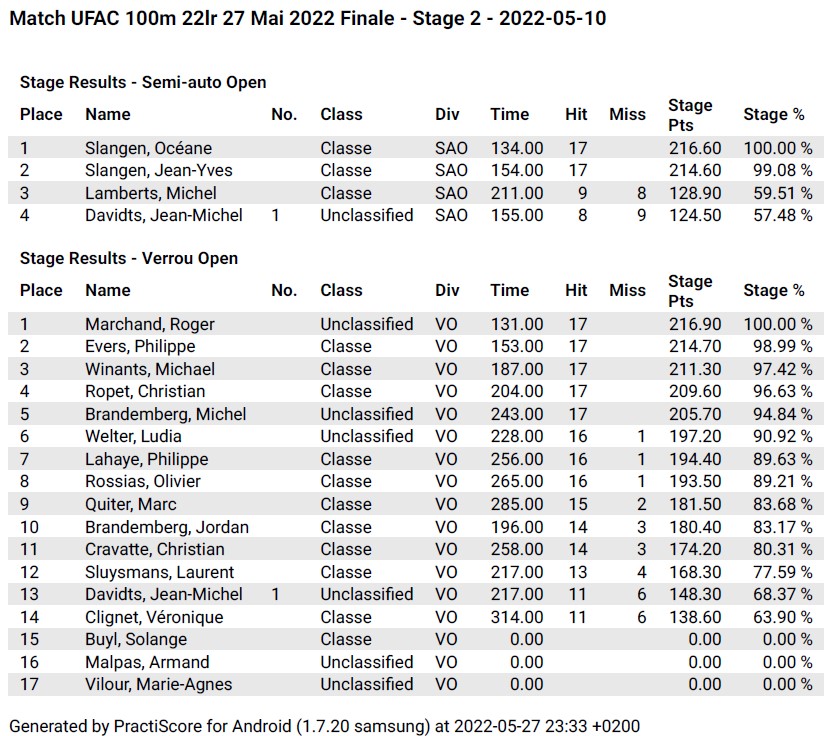 - Général par catégorie (Semi-auto Open et Verrou Open)