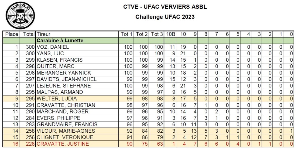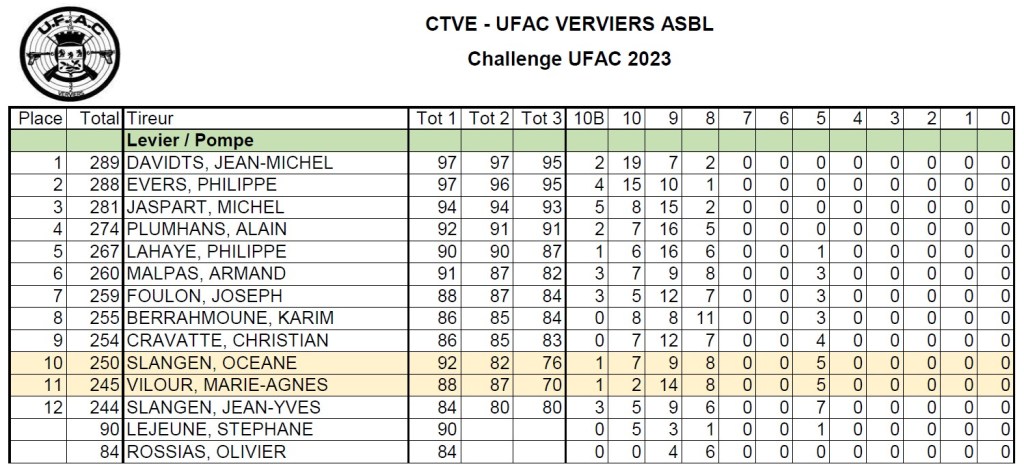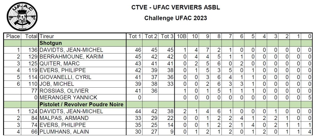 Voici les résultats pour les 5 premières disciplines du Challenge UFAC 2023 :