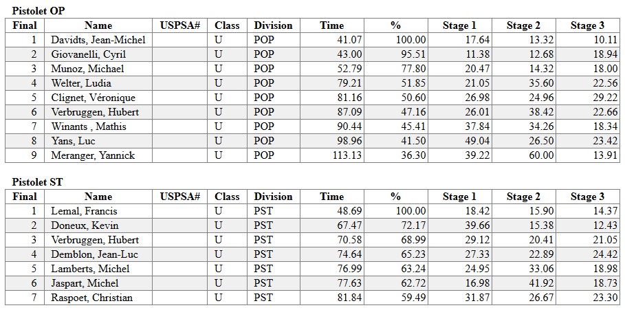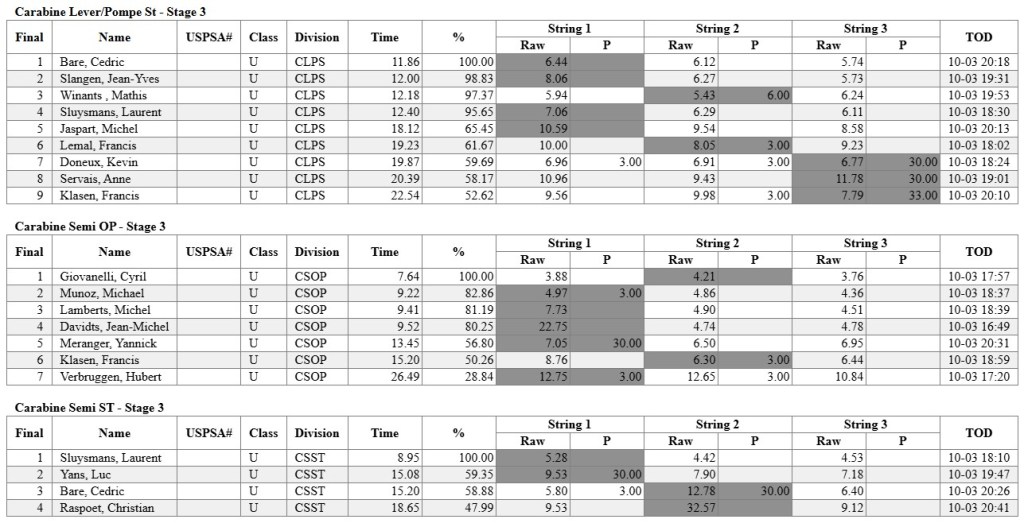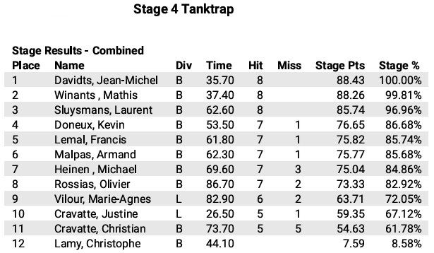 Voici les résultats complets du tir multicibles du 3 octobre 2025 :