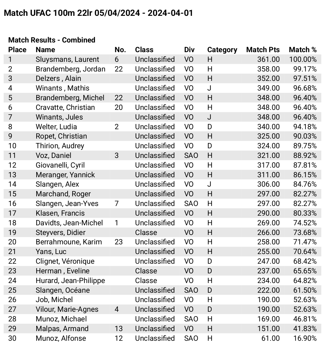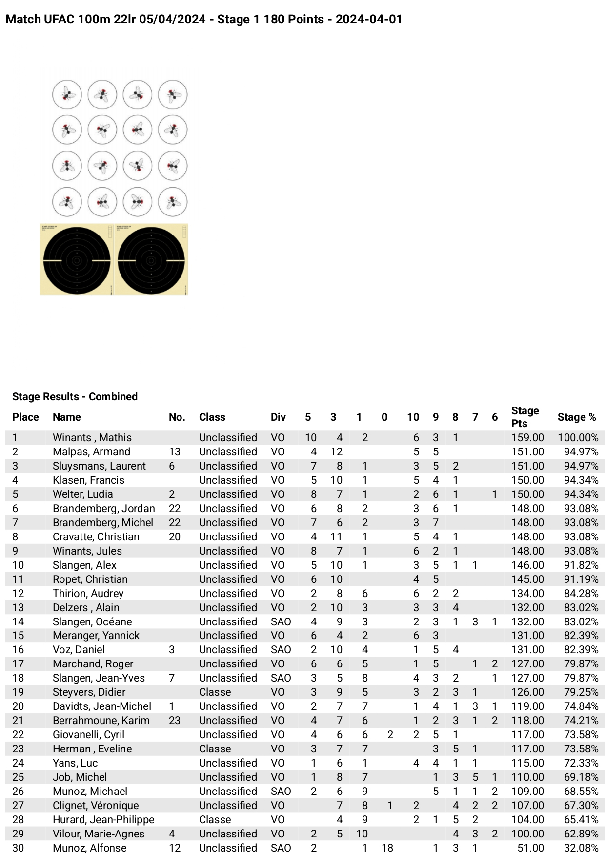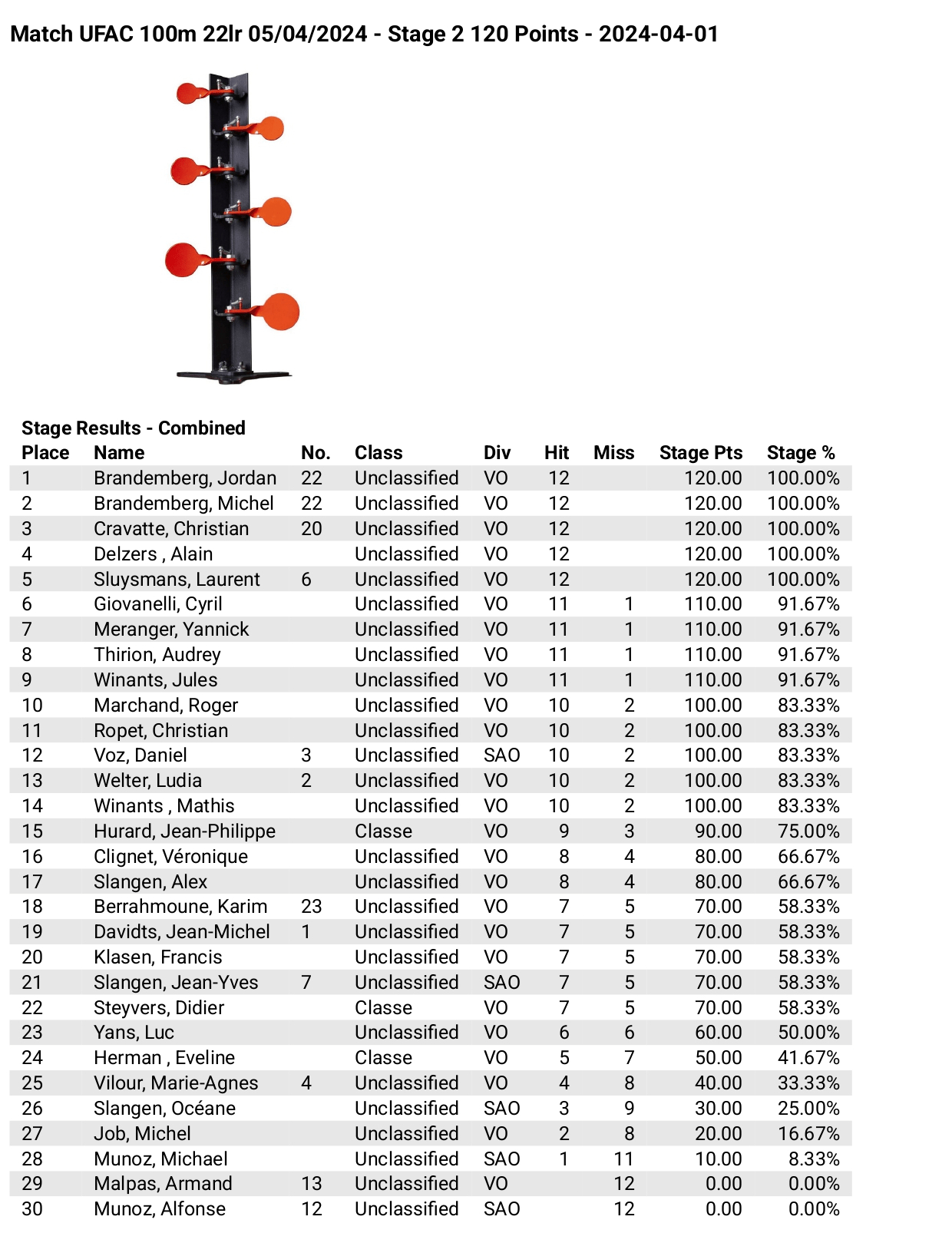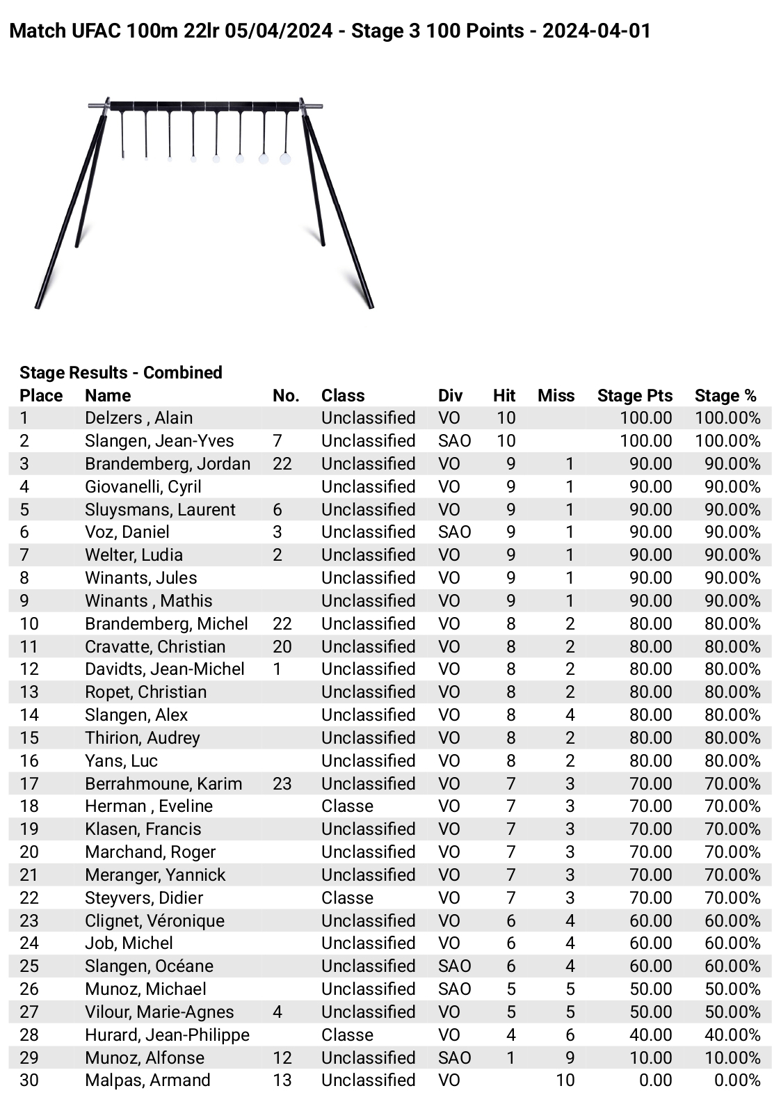 Voici les résultats complets du tir multicible 22 LR du 5 avril 2024 :