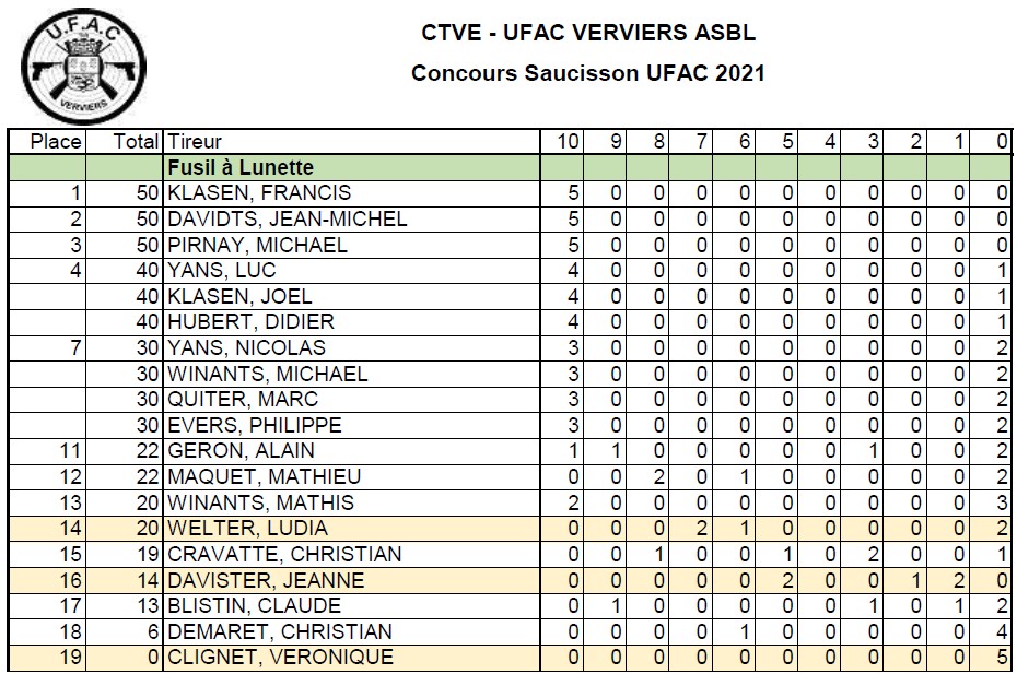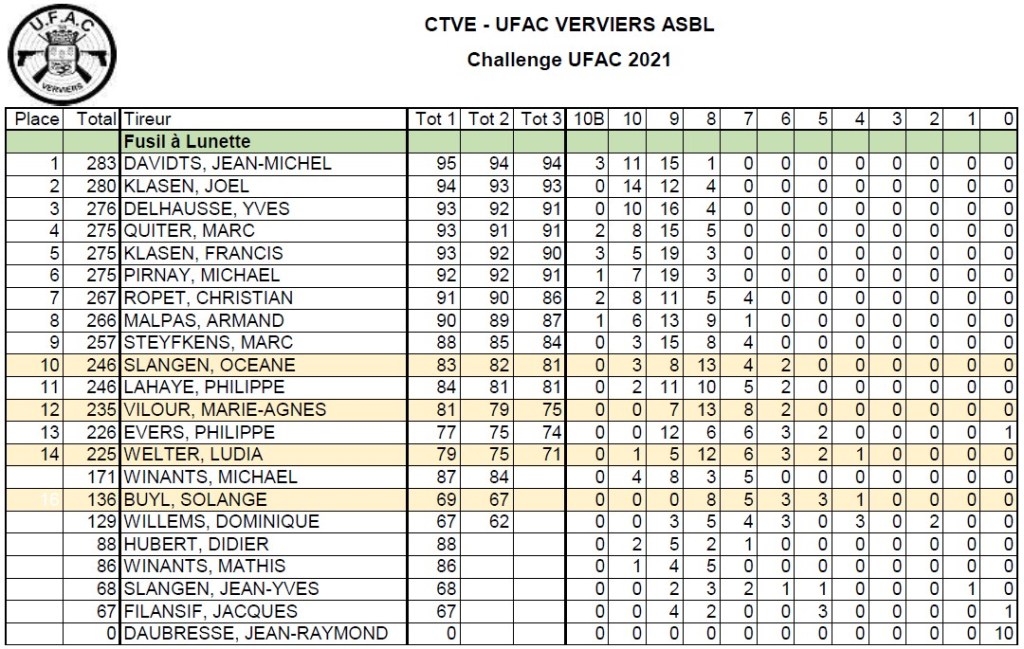 Les nombreux ex-aequo en catégorie Fusil à Lunette nous ont obligé à prendre en compte les meilleures deuxième et troisième cibles de chacun pour déterminer l’ordre du podium.