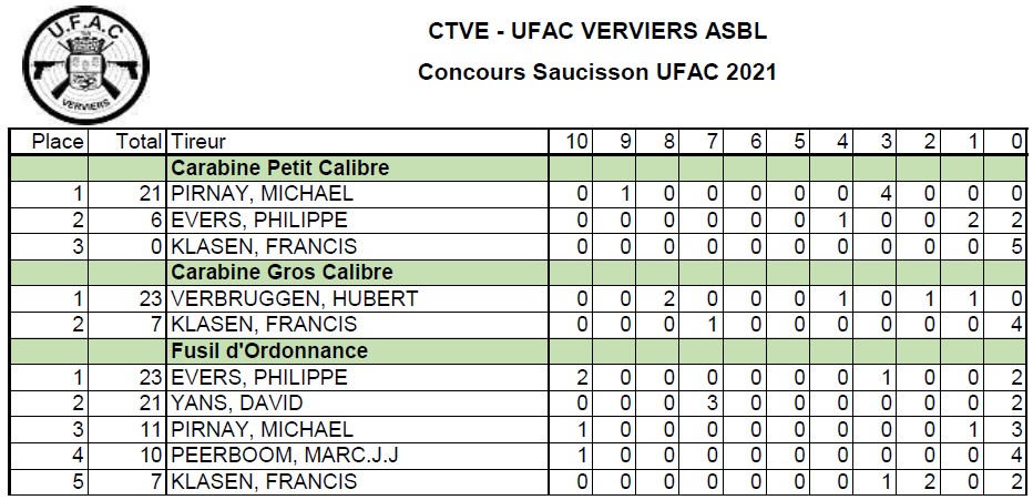 Pour clôturer la saison 2021, nous vous invitons à notre traditionnel Concours Saucisson le dimanche 28 novembre durant les heures de tir habituelles.