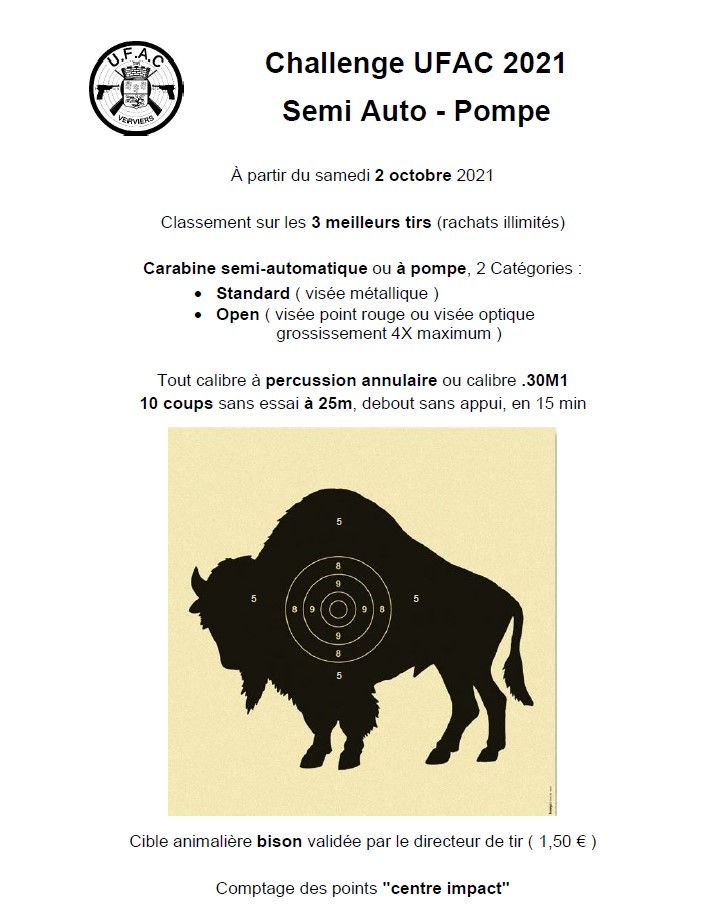 Inscription pour une première catégorie 8 € donnant droit à la participation au tirage au sort de bons d’achat de 100€, 50€ et 25€ valables chez notre partenaire LiègeArms