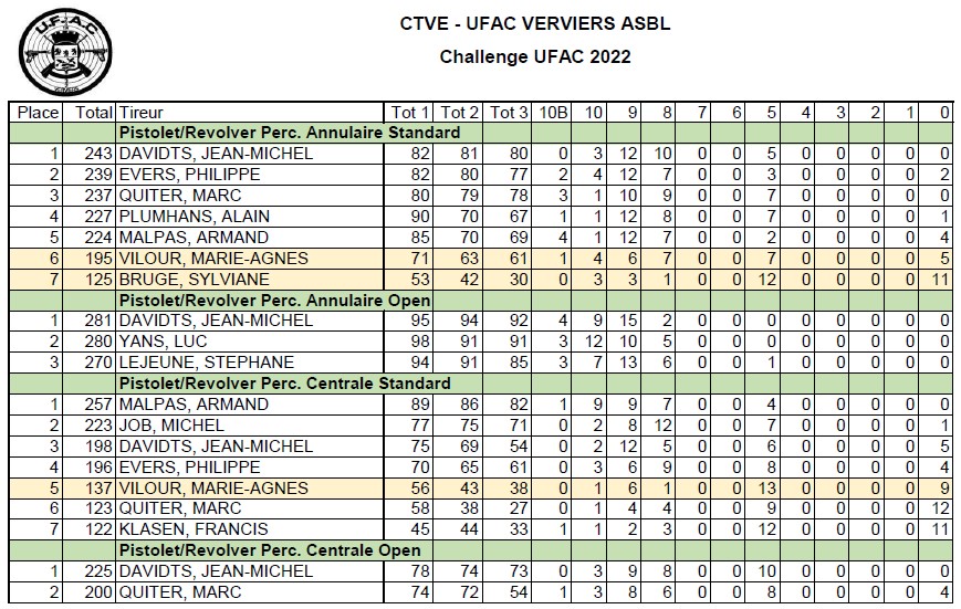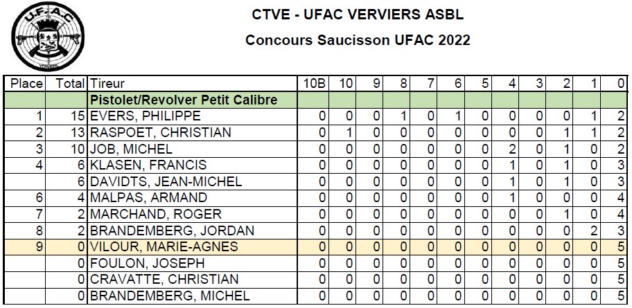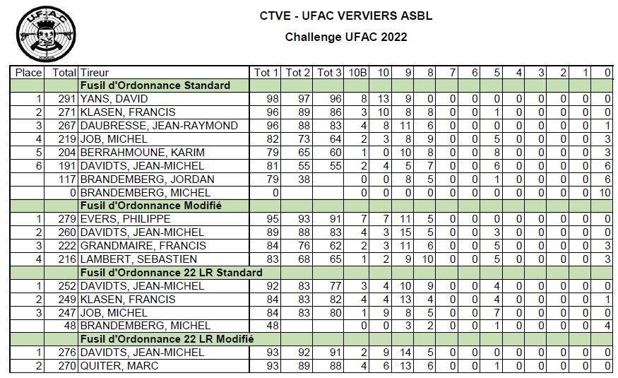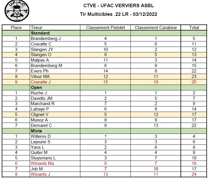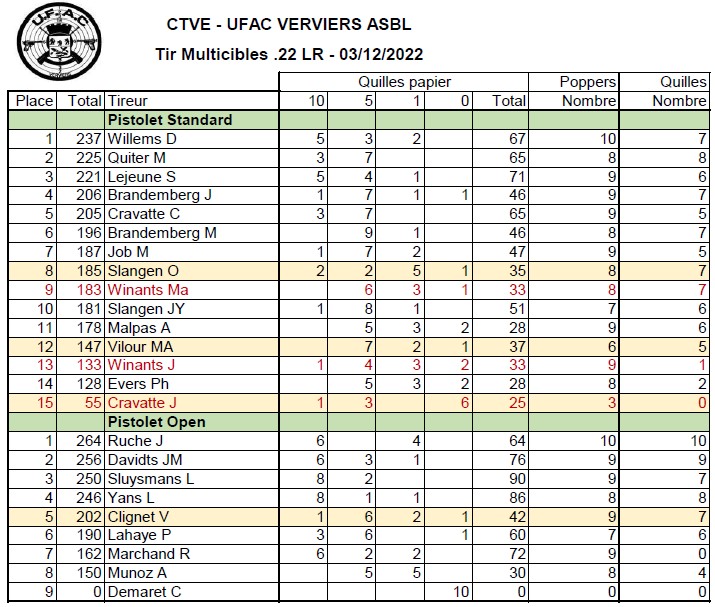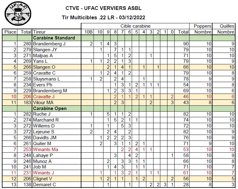 Voici les résultats complet du Concours de Fin d’Année Multicibles 22 LR du 3 décembre 2022 :
