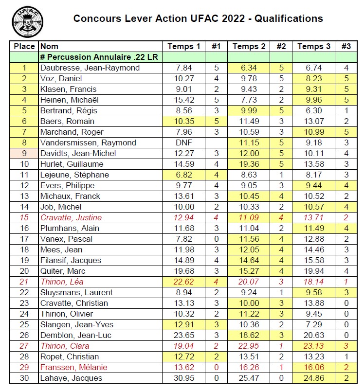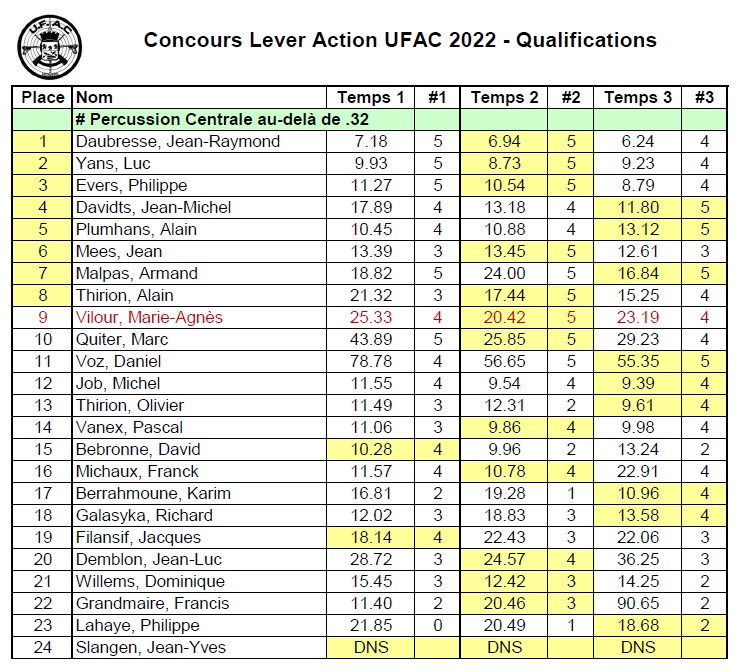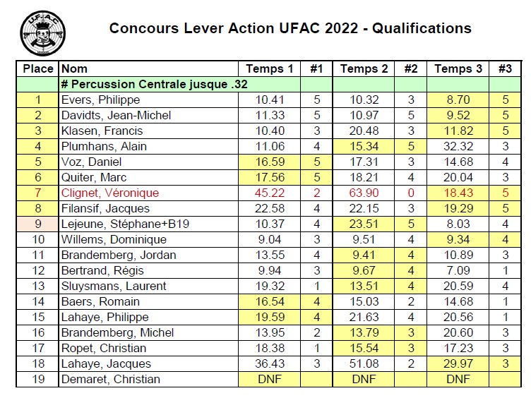 Voici les résultats complets du Concours Lever Action UFAC du 20 août 2022.