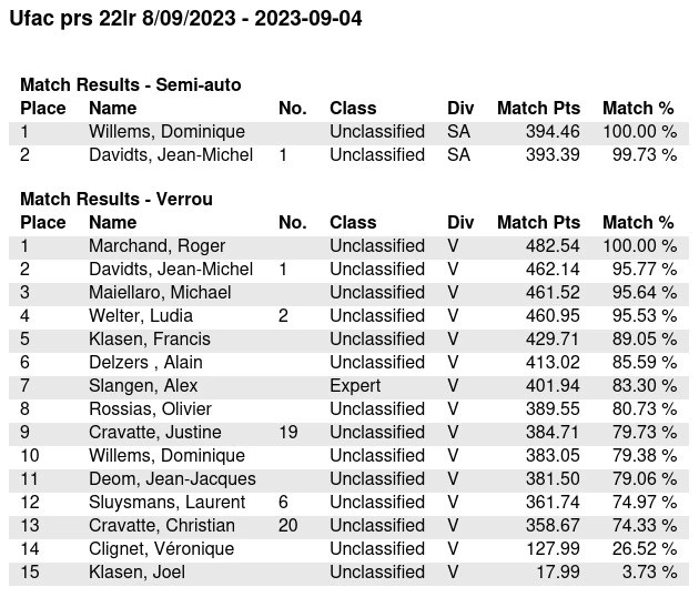 Voici les résultats complets du Tir PRS du 8 septembre 2023 :