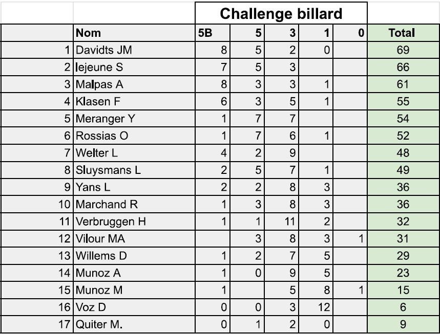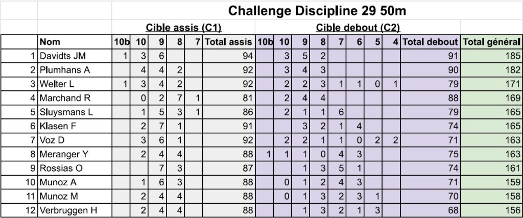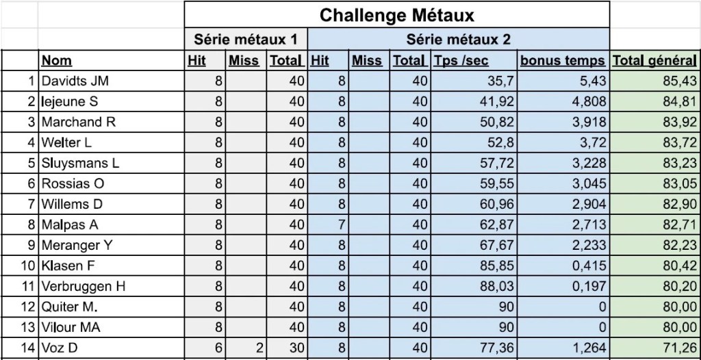 Voici les résultats complets du tir multicible 22 LR du 27 octobte 2023 :