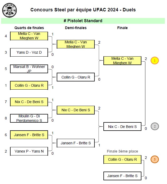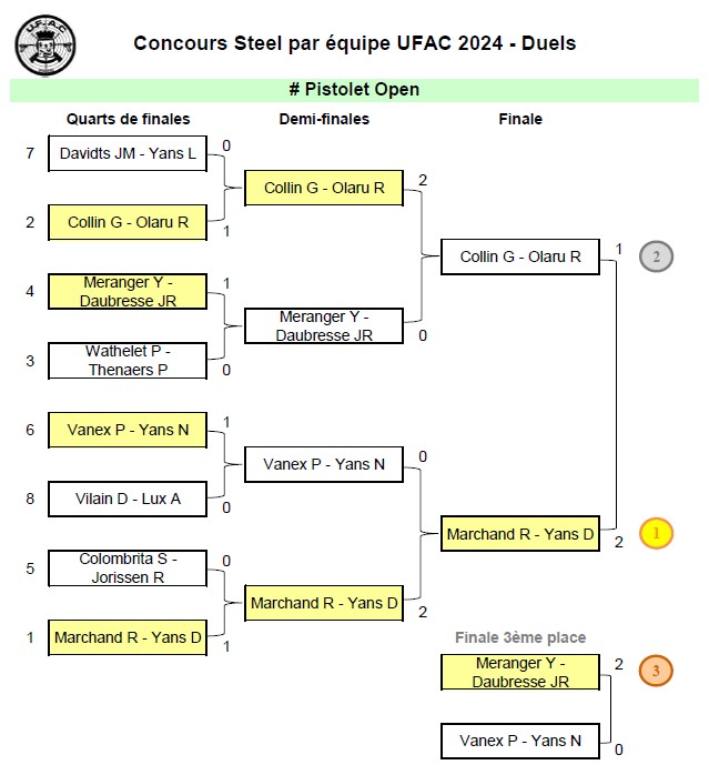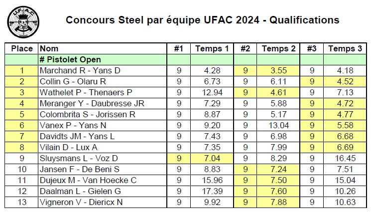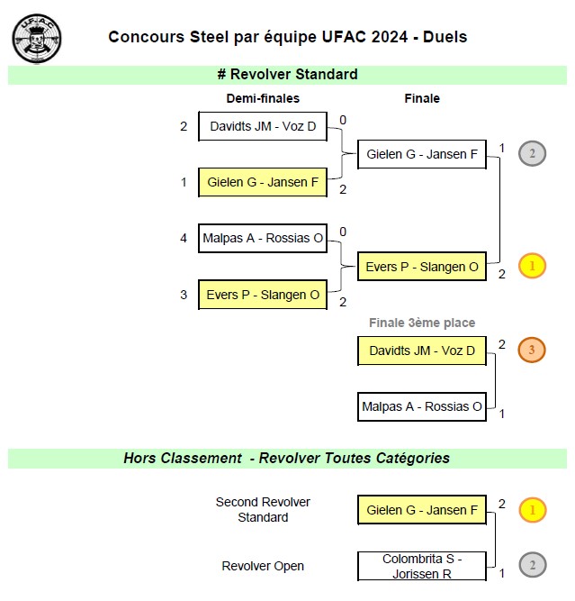 Voici les résultats complets du Concours Steel par équipe UFAC du 21 septembre 2024, seconde manche du challenge interclubs multicibles.