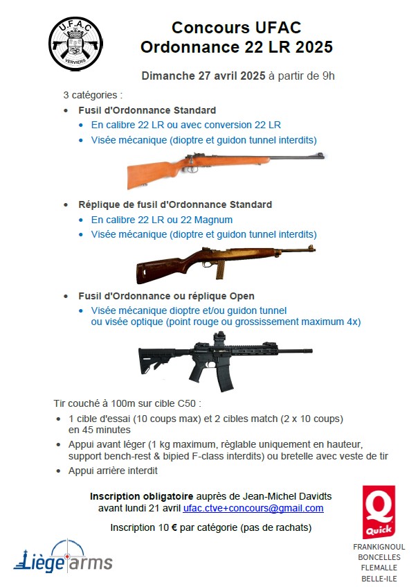 - 3 catégories : Pistolet Standard, Pistolet Open (visée optique) et Revolver Standard