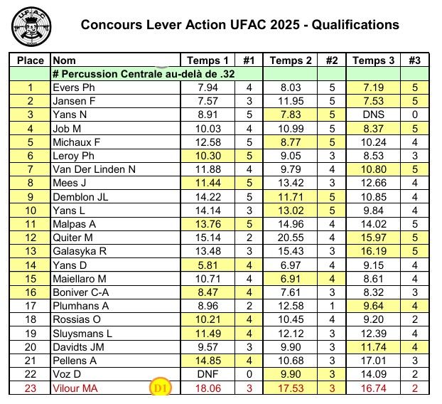 Voici les résultats complets du Concours Lever Action UFAC du 30 août 2025.